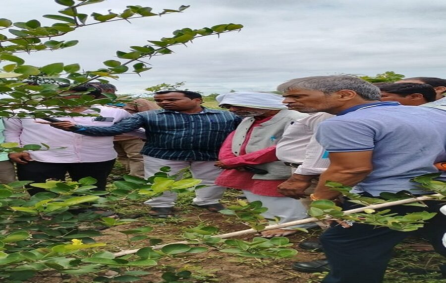भिगवण : भादलवाडी (ता. इंदापूर) येथे पद्मश्री डॉ सुभाष पाळेकर यांच्या मार्गदर्शनाखाली रामकृष्ण महादेव येकाळे यांच्या शेतात रविवारी (ता.२१) शिवार फेरी संपन्न झाली.