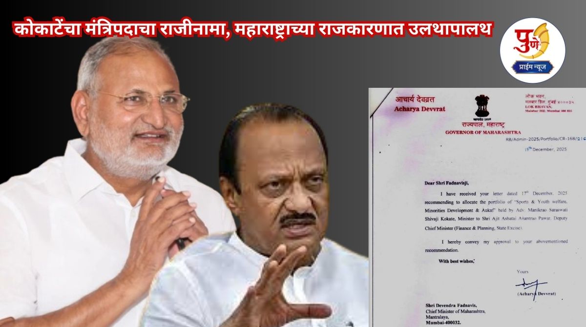 मुंबई: क्रीडामंत्री माणिकराव कोकाटे (Manikrao Kokate) यांनी आपल्या मंत्रिपदाचा (Manikrao Kokate Resign) राजीनामा दिल्याची माहिती (Breaking News) समोर आली आहे. राज्यपाल आचार्य (Ajit Pawar) देवव्रत यांनी मुख्यमंत्री देवेंद्र फडणवीस यांच्या पत्राचा संदर्भ देत खातेबदलाच्या आदेशास मंजुरी दिली आहे. त्यामुळे राज्याच्या राजकीय वर्तुळात मोठी खळबळ उडाली असून माणिकराव कोकाटे यांच्याकडील सर्व खात्यांची जबाबदारी आता उपमुख्यमंत्री अजित पवार यांच्याकडे देण्यात आली आहे. माणिकराव कोकाटे यांनी आपला राजीनामा अजित पवार यांच्याकडे दिल्यानंतर या घडामोडी वेगाने घडल्या. (Maharashtra Politics)