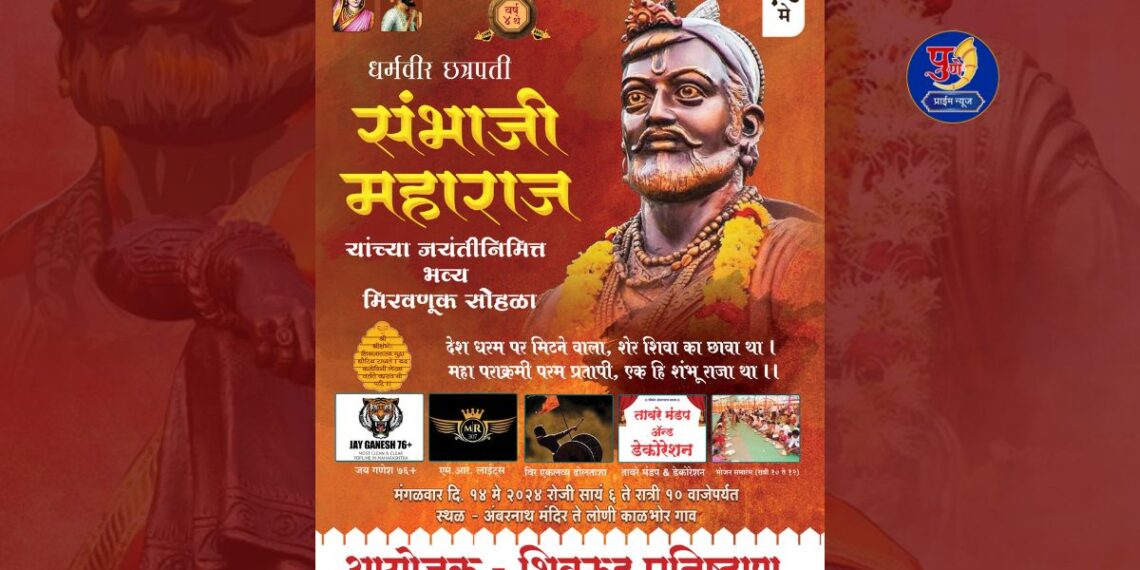 लोणी काळभोर : धर्मवीर छत्रपती संभाजी महाराज यांच्या ३६७ व्या जयंतीनिमित्त लोणी काळभोर (ता. हवेली) येथे मंगळवारी (ता. १४) विविध धार्मिक व समाजोपयोगी कार्यक्रमांचे आयोजन करण्यात आले आहे. अशी माहिती लोणी काळभोर येथील शिवरुद्र प्रतिष्ठाणच्या पदाधिकाऱ्यांनी दिली आहे.