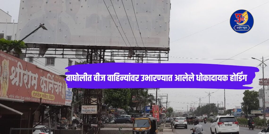 वाघोली येथे नगर रस्त्यासह परिसरात मोठ्यासंख्येने होर्डिंग आहेत. अनेक ठिकाणी विद्युत वाहिन्यांवर होर्डिंग उभारले आहेत. होर्डिंगच्या खालून विद्युत वाहिन्या असल्याने होर्डिंग कोसळल्यास मोठी दुर्घटना होण्याची शक्यता नाकारता येत नाही. होर्डिंग उभारण्यासाठी महावितरणची कुठलीही परवानगी घेतली गेली नाही. घाटकोपरची पुनरावृत्ती होऊ नये म्हणून वेळीच उपाययोजना करणे गरजेचे आहे. जोराच्या वाऱ्यामुळे होर्डिंगचे फाटलेले फ्लेक्स विद्युत वाहिन्यांना गुंडाळले जातात. त्यामुळे विद्युत पुरवठा खंडित होतो. अशावेळी वीज पुरवठा सुरळीत करताना विद्युत महावितरणला नागरिकांचा रोष पत्करावा लागतो.