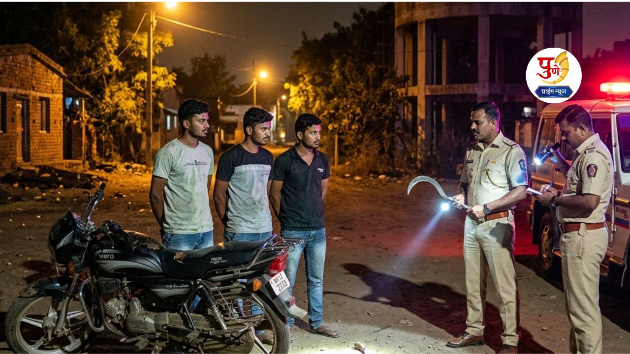 पोलीस उपनिरीक्षक विष्णू देशमुख यांच्या मार्गदर्शनाखाली पंचांना सोबत घेऊन पथकाने घटनास्थळी धाड टाकली. पोलिसांची चाहूल लागताच तिघांनी पळ काढण्याचा प्रयत्न केला; मात्र पोलिसांनी तत्परतेने पाठलाग करून त्यांना जागीच पकडले. ताब्यात घेतलेल्या मुलांची अंगझडती घेतली असता एकाच्या कमरेला लपवून ठेवलेला सुमारे 15 इंच लांबीचा धारदार लोखंडी कोयता आढळून आला. तसेच त्यांच्या ताब्यातील काळ्या रंगाची स्प्लेंडर मोटारसायकल (क्रमांक MH12 YW 5164) जप्त करण्यात आली. जप्त करण्यात आलेल्या मुद्देमालाची एकूण किंमत अंदाजे 70 हजार 300 रुपये आहे.