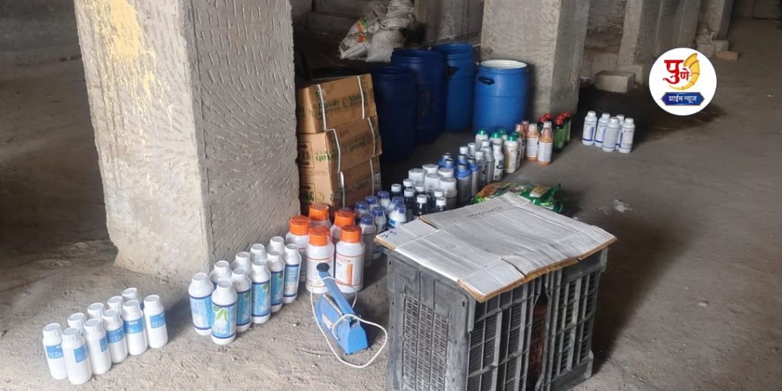 लोणी काळभोर : कोणताही शासकीय परवाना नसताना लोणी स्टेशन परिसरात कृषी कीटकनाशकांची विक्री होत असल्याचा पर्दापाश करण्यास पुणे कृषी विभागाला बुधवारी दुपारी दोन वाजण्याच्या सुमारास यश आले आहे. या कारवाईत बोगस मुद्देमाल जप्त करण्याचे काम सुरू आहे.
