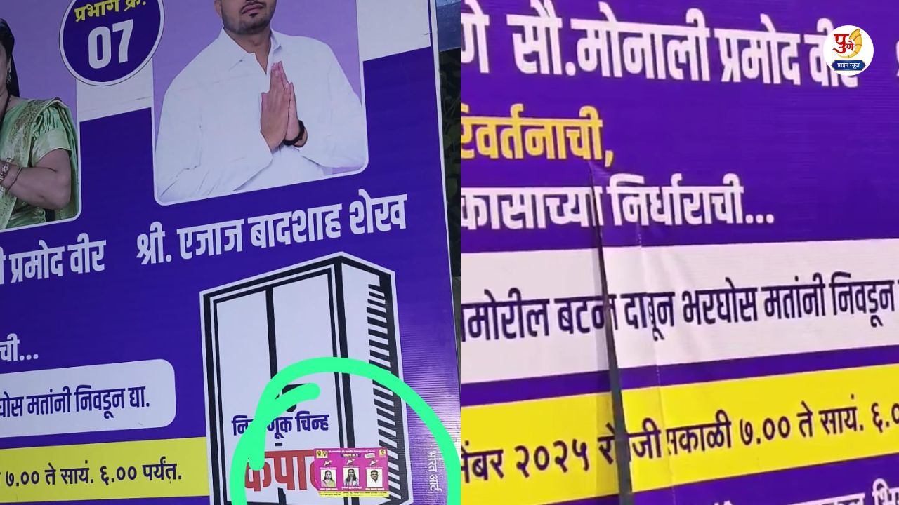या बॅनरवर केंद्रीय मंत्री रामदास आठवले, जोगेंद्र कवाडे, दौंडचे आमदार राहुल कुल, तसेच प्रेमसुख कटारिया यांच्यासह नगराध्यक्ष पदाच्या उमेदवार मोनाली प्रमोद वीर, आणि नगरसेवक पदाचे उमेदवार कार्तिकी अनिल सोनवणे व एजाज बादशाह शेख यांचे फोटो व चिन्हे होती.