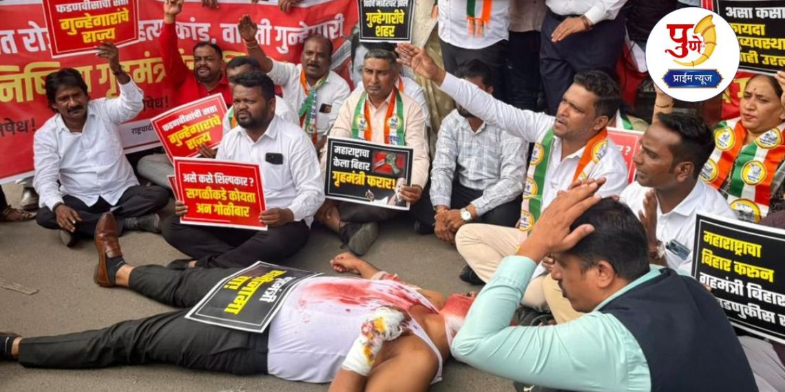 कायदा आणि सुव्यवस्थेचे 12 वाजल्याचा आरोप करत राष्ट्रवादी काँग्रेस पार्टी (शरदचंद्र पवार) गटाने तीव्र निषेध केला आहे. यावेळी शहराध्यक्ष प्रशांत जगताप यांनी राज्य सरकारवर तीव्र शाब्दिक हल्ला चढवला. ते म्हणाले की, राज्यातील कायदा आणि सुव्यवस्था फक्त कागदावरच उरली आहे. मुख्यमंत्री देवेंद्र फडणवीस पुण्यात गुन्हेगारीने थैमान घातलेले असताना, दूर बिहारमधील पक्ष प्रचारात मग्न आहेत. शहरात खुलेआम खून आणि टोळीयुद्धे होत असताना प्रशासन केवळ झोपल्याचे सोंग घेत आहे.