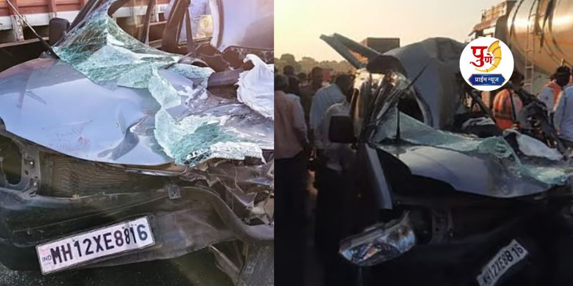 मिळालेल्या माहितीनुसार, सोलापूर-पुणे लेनवरून एक आयशर टेम्पो (MH 13 CU 5163) जात असताना अचानक त्याचे टायर पंक्चर झाले. चालकाने हा टेम्पो रस्त्याच्या कडेला उभा केला, मात्र तो अत्यंत धोकादायक स्थितीत होता. याच दरम्यान, पाठीमागून वेगाने येणाऱ्या कार चालकाला टेम्पो दिसून न आल्याने इको कारच्या (MH 12 XE 8816) चालकाचा ताबा सुटला आणि ही कार थेट उभ्या असलेल्या टेम्पोवर जाऊन आदळली.