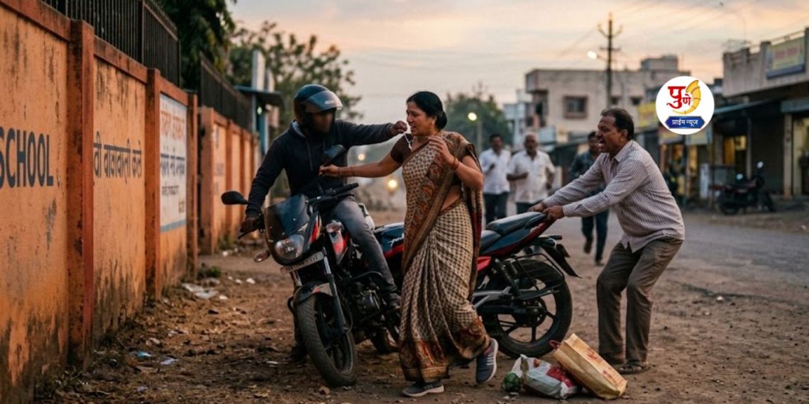 यावेळी प्रसंगावधान राखत भरत काळे यांनी त्या दुचाकीला पाठीमागून पकडले. त्यामुळे दुचाकी खाली पडली व आरोपी तेथून पळून जाण्याचा प्रयत्न करू लागला. दरम्यान, जयश्री व भरत काळे यांनी मोठ्याने “चोर… चोर…” असा आरडाओरडा केला. त्यामुळे परिसरातील नागरिक धावत आले. विजय कांचन व इतर नागरिकांच्या मदतीने त्या युवकाला पकडून पोलिसांच्या ताब्यात देण्यात आले.