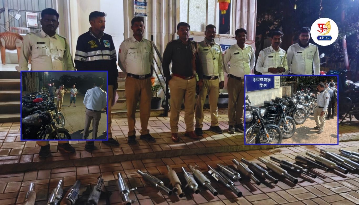 Pune News : पुणे शहर वाहतूक पोलिसांनी २० फेब्रुवारी २०२६ रोजी संपूर्ण शहरात मॉडिफाईड सायलेन्सर असलेल्या बुलेट मोटरसायकलींविरोधात विशेष मोहीम राबवली. या कारवाईत एकूण ३४८ बुलेट वाहनांवर दंडात्मक कारवाई करण्यात आली. सर्व संबंधित वाहनांचे मॉडिफाईड सायलेन्सर तात्काळ काढून जप्त करण्यात आले. या मोहिमेदरम्यान ₹३,३४,००० इतका दंड शासनाकडे जमा करण्यात आला असून ३४८ मॉडिफाईड सायलेन्सर आणि १४८ वाहने जप्त करण्यात आली.