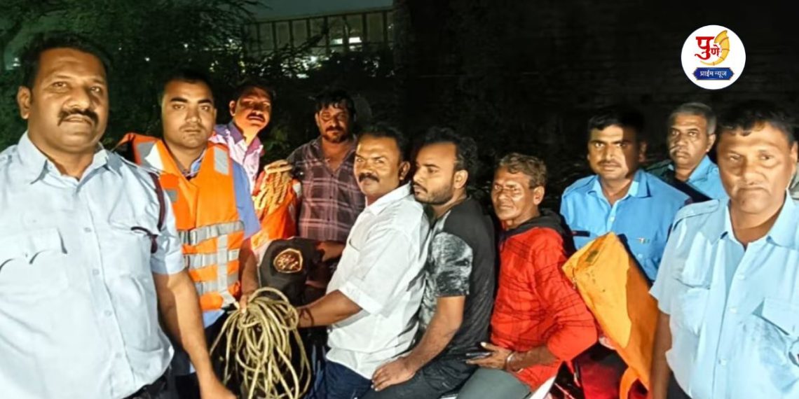 याबाबत अधिक माहिती अशी कि, अग्निशमन दलाचे जवान घटनास्थळी पोहोचताच त्यांनी एक तरुण नदीपात्रातील पाण्याच्या प्रवाहामध्ये अडकल्याचे पाहिले. त्यावेळी दोरी आणि लाईफ जॅकेटचा वापर करून पाच मिनिटात तरुणाची सुखरुप सुटका करण्यात जवानांना यश आले आहे. जीवरक्षक राजू काची यांनी मदतकार्यात मोलाचे सहकार्य केले आहे.