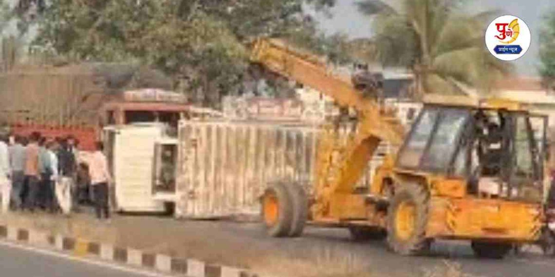 मिळालेल्या माहितीनुसार, पुणे सोलापूर राष्ट्रीय महामार्गावरून आयशर टेम्पो पुण्याकडून सोलापूरच्या दिशेने भरधाव वेगाने चालला होता. आयशर टेम्पो चौफुला येथील जगदंबा हॉटेल समोर आला असता, चालकाचे त्याच्या ताब्यातील आयशरवरील नियंत्रण सुटले.
