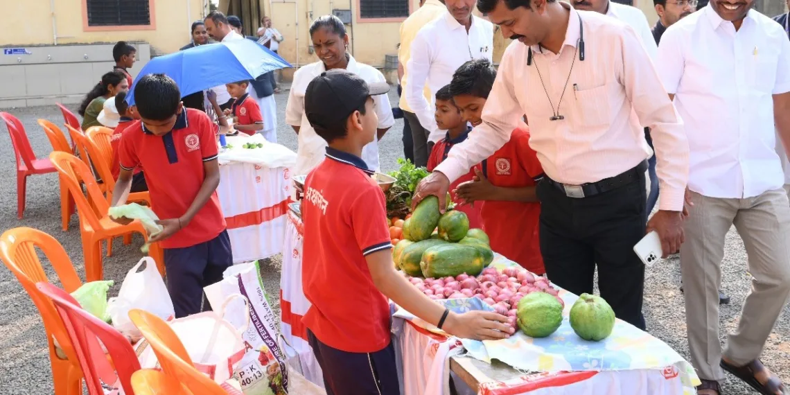 रांजणगाव गणपती : सर, सेंद्रिय पद्धतीने पिकवलेल्या भाज्या अन् फळं विकायला आणलीत. पपई तर खूपच गोड आहेत. स्वस्त आणि मस्त… तुमची रोगप्रतिकारक शक्ती वाढेल, असे संभाषण करत विद्यार्थी स्वतः थाटलेल्या दुकानात खरेदी-विक्री करत होते. पालक, शिक्षक तसेच ग्रामस्थांनीही वस्तू खरेदी करून खरेदीचा आनंद लुटला.