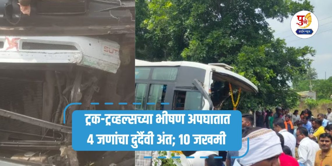 याबाबत अधिक माहिती अशी की, नागपूर भिवापूररोडवर ट्रक आणि खासगी ट्रव्हल्सचा भीषण अपघात झाला आहे. उभ्या ट्रकला ट्रॅव्हल्सने जोरदार धडक दिली. ट्रकला धडक दिल्यानंतर ट्रव्हल्स बसच्या बाजूला असलेल्या हॉटेलमध्ये घुसली. त्यामुळे या अपघातात हॉटेलचेही मोठे नुकसान झाले आहे. ट्रव्हल्स आणि ट्रकच्या या अपघातात चार जणांचा जागीच मृत्यू झाला आहे. तसेच दहा पेक्षा जास्त जण जखमी झाले असल्याची माहिती मिळत आहे. जखमींवर जवळील रुग्णालयात उपचार सुरु असून पोलिस या घटनेचा तपास करत आहेत.
